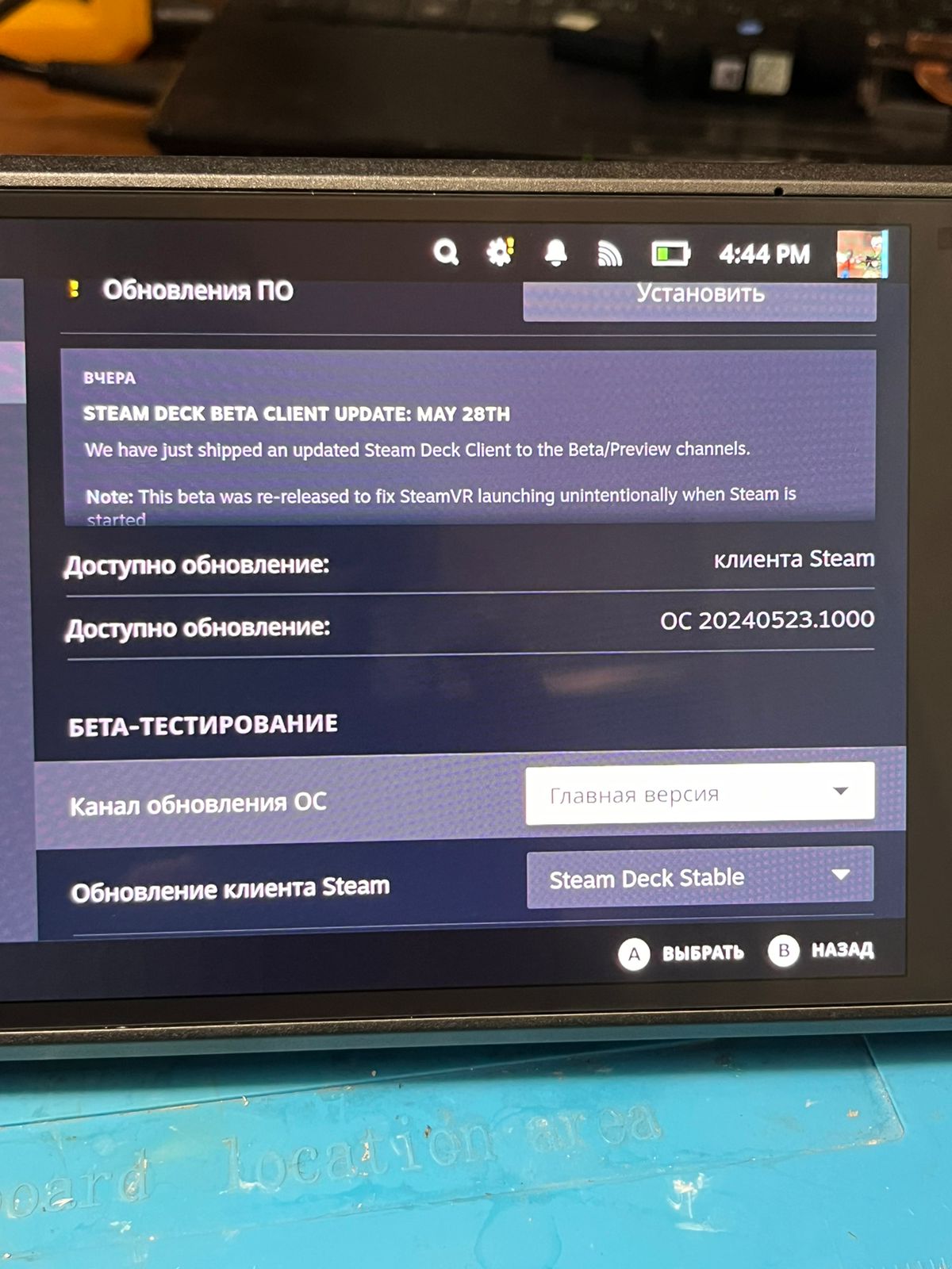 4. После этого возвращайтесь обратно в СИСТЕМА и там нужно выбрать: STEAM DECK STABLE / ГЛАВНАЯ ВЕРСИЯ